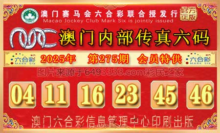 275期:『澳彩内部』『⑥码中特』【04.11.16.23.45.46】开:鸡45准